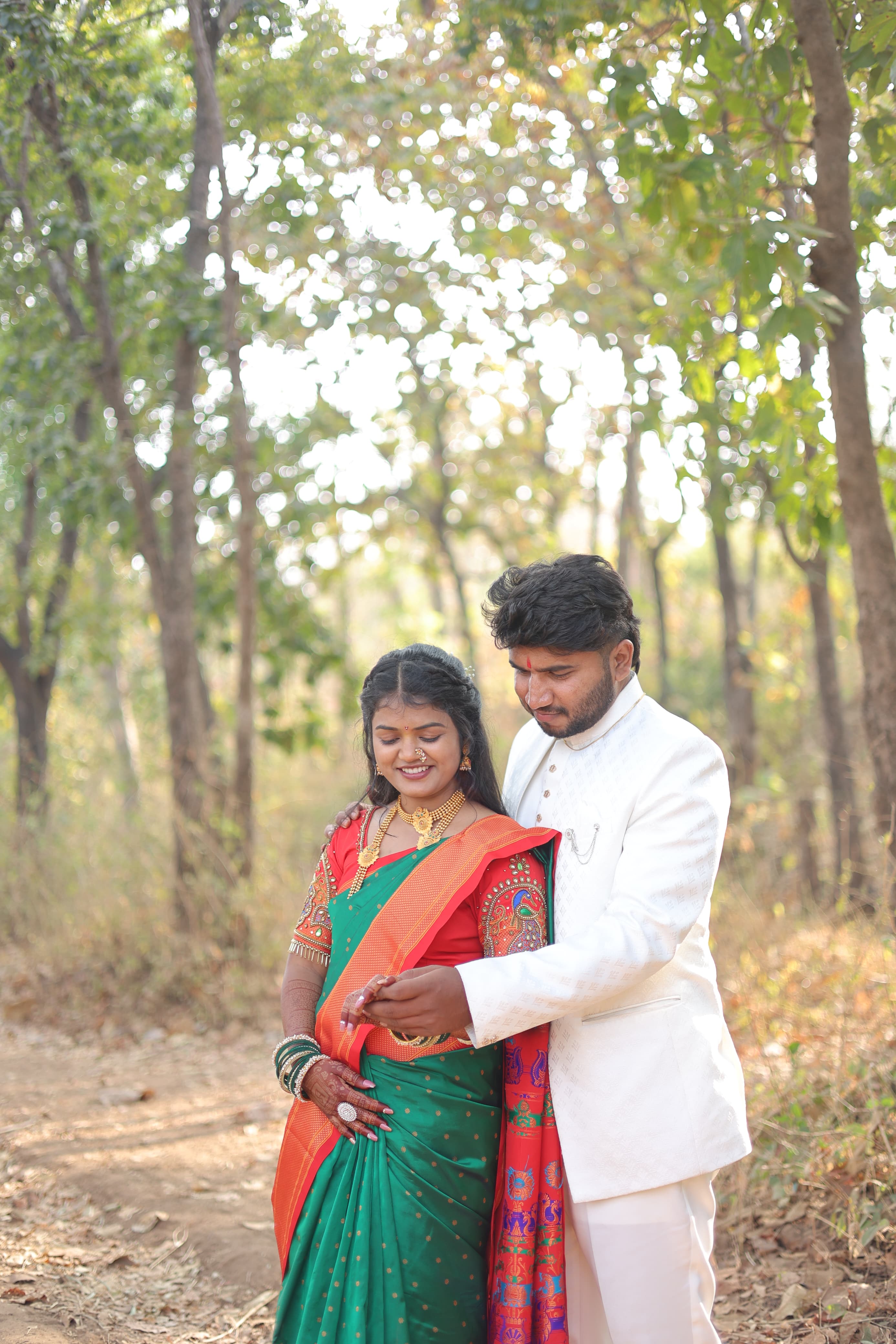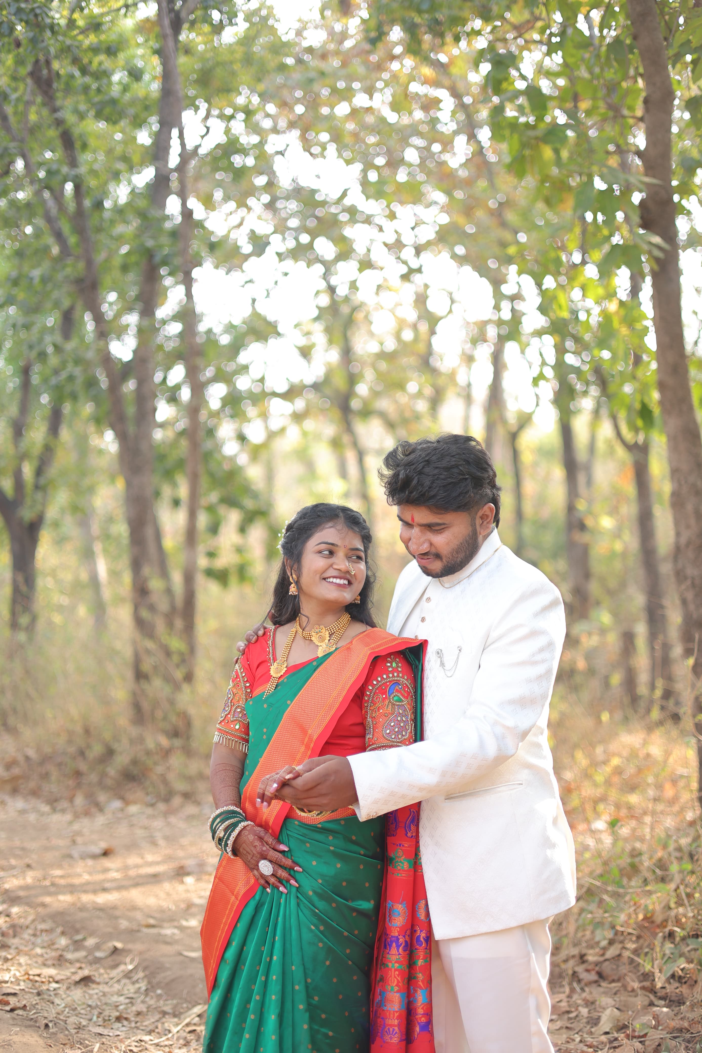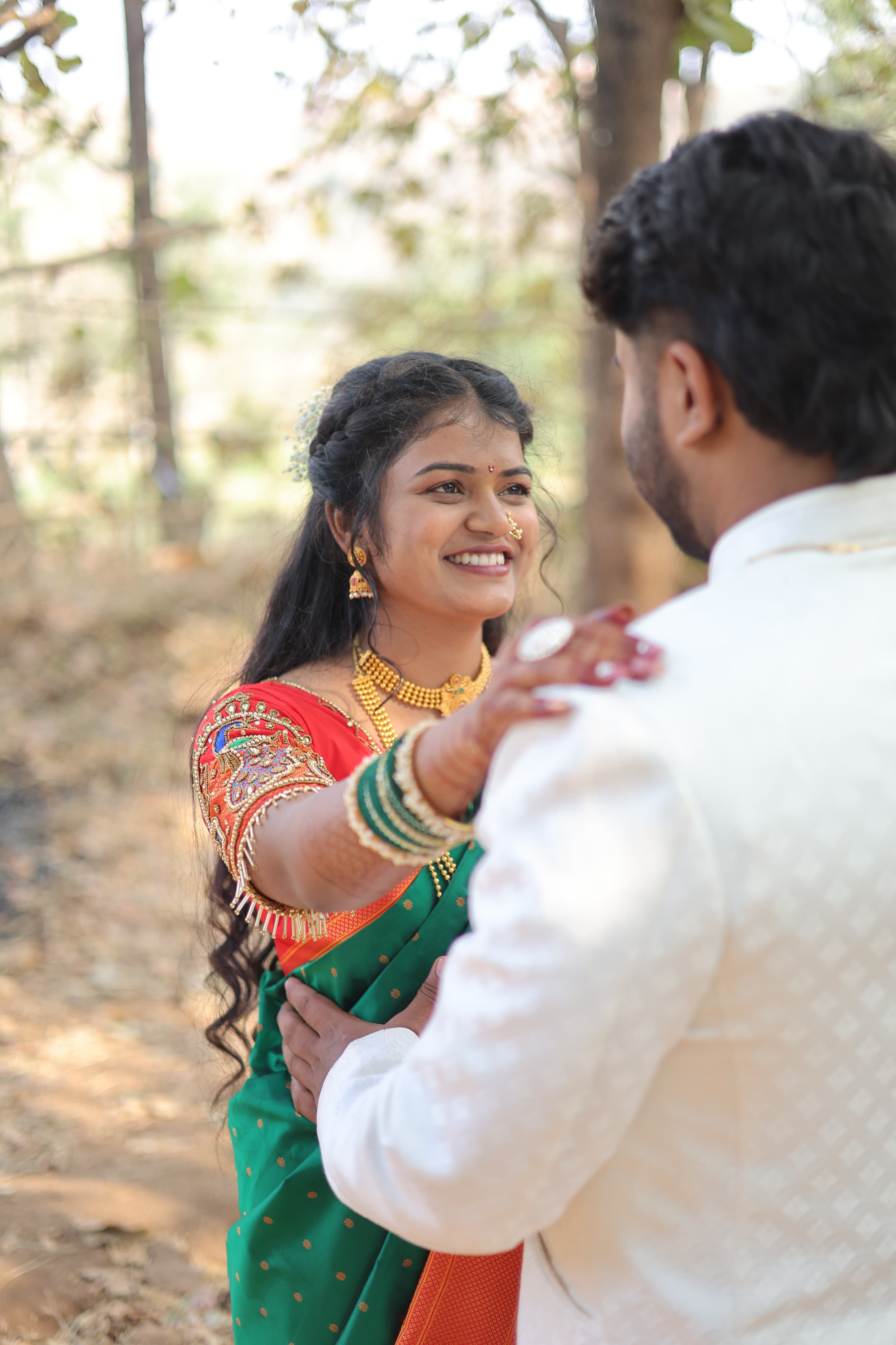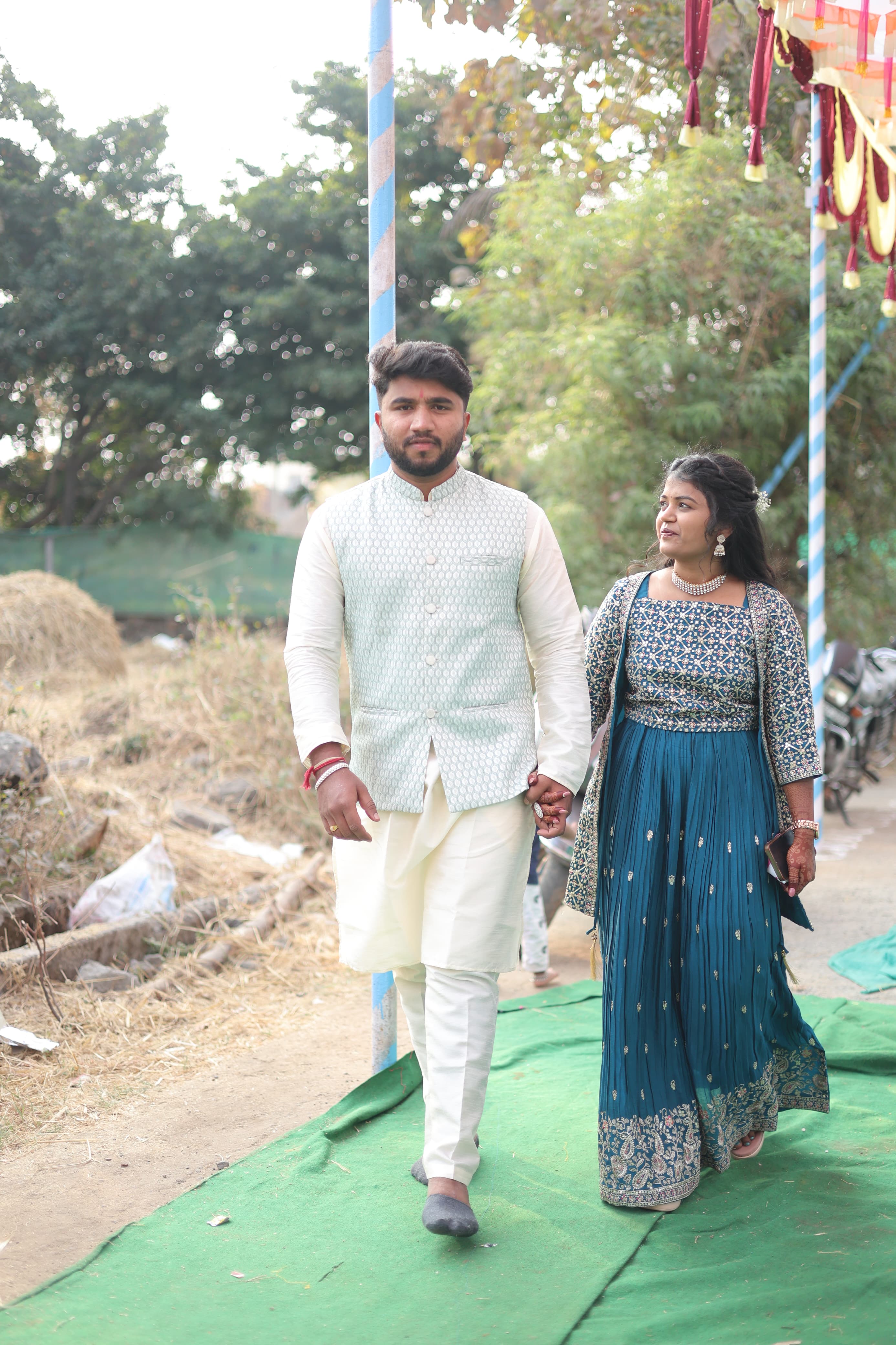 नवदाम्पत्याचा कुटुंबाच्या आशीर्वादाने निरोप. नवीन आयुष्याच्या प्रवासास शुभारंभ.